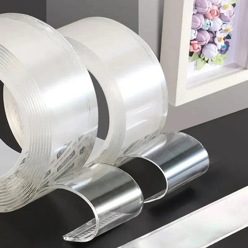 Maak kennis met SuperTape™, de Transparante Nano Dubbelzijdige Tape! Deze innovatieve tape is de perfecte oplossing voor al je uitdagingen in huis en daarbuiten. De sterke hechting en het onzichtbare ontwerp maken het ideaal voor verschillende toepassingen, zodat alles op zijn plaats blijft zonder sporen of schade achter te laten.